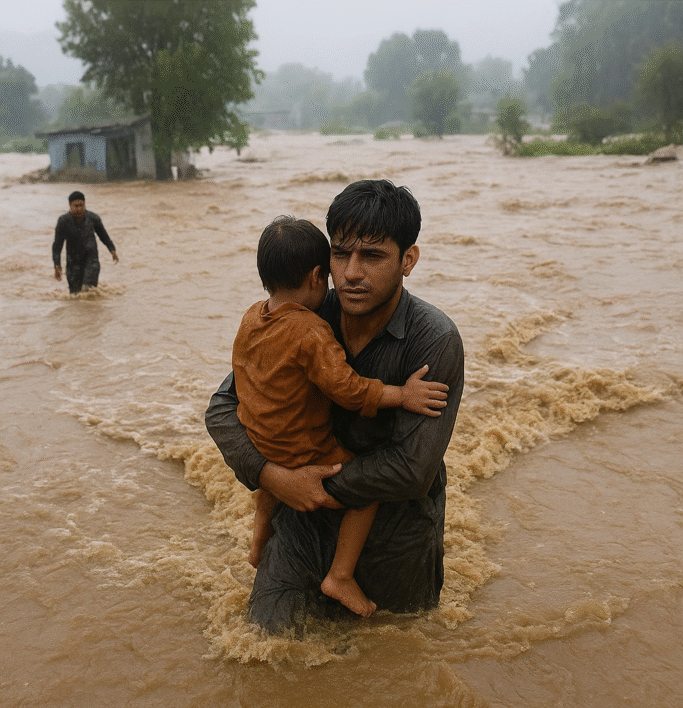 پاکستان اور پاکستان کے زیر انتظام کشمیر میں حالیہ شدید بارشوں کے نتیجے میں آنے والے فلیش فلڈز (Flash Floods) نے تباہی مچا دی۔ حکام کے مطابق اب تک 300 سے زائد افراد جاں بحق اور سینکڑوں زخمی ہو چکے ہیں، جب کہ ہزاروں مکانات، سڑکیں اور فصلیں سیلابی پانی میں بہہ گئیں۔